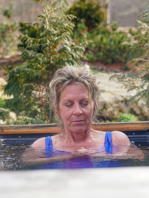 A refreshing outdoor cold plunge and a lakeside sauna session